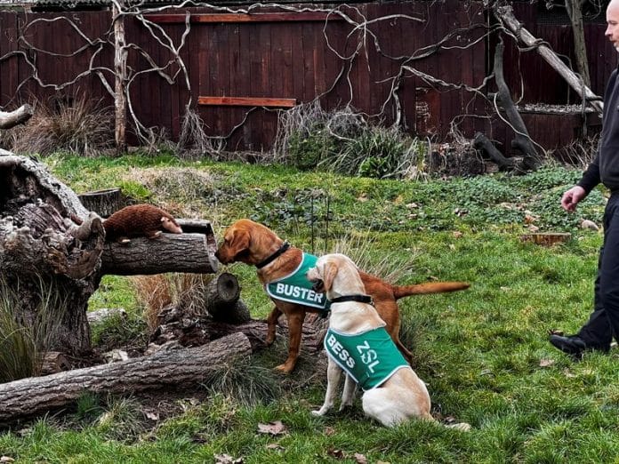 The two dogs, Buster and Bess, who have already undergone an eight-week training programme with London’s Metropolitan Police, will be sent to Thailand to complete their training, and then use their sniffing skills to detect pangolins being smuggled through airports, ports and by road.
