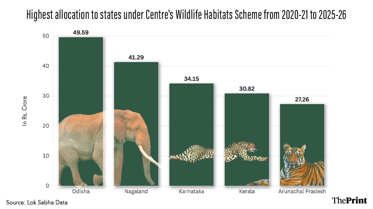 The MOEFCC was responding to a question about the Integrated Development of Wildlife Habitat Schemes—a group of centrally-sponsored schemes that include Project Tiger, Project Elephant, Project Cheetah, and the development and management of wildlife reserves and protected areas in the country. The scheme also includes conservation programmes for 24 species such as the Great Indian Bustard, snow leopards, gharials, and dolphins in the country.