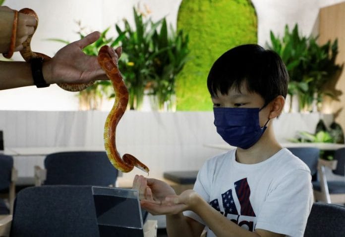 SUBANG JAYA, Malaysia (Reuters) – Malaysian reptile enthusiast Yap Ming Yang hopes visitors to his pet-friendly cafe will learn to appreciate snakes and lizards as much as they do furrier creatures such as dogs and cats.