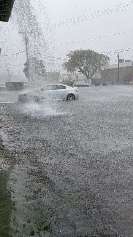 Video footage on social media showed sheets of rain pounding the area as flood waters reached the tops of cars, and people wading through waters. In one video, a person swam in waters that had flooded a roadway.