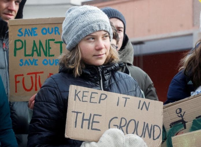 BERLIN (Reuters) – Swedish activist Greta Thunberg warned on Tuesday that humanity was “rushing towards the cliff” of climate catastrophe, and a new study by think tank Climate Analytics showed that could only be averted by ramping up wind and solar energy installations five times faster and cutting fossil fuels production 6% annually by 2030.