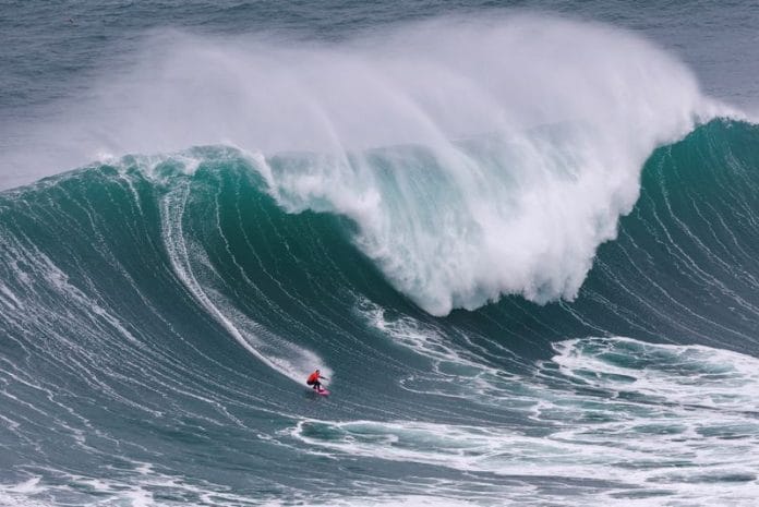 After waiting for almost two months for a big swell in what has been a quiet season in Nazare, the competition started with 25-foot waves on Monday morning and wrapped up with 35-foot-plus walls late in the afternoon, but never reached the potential 50-foot swell that had been forecast.