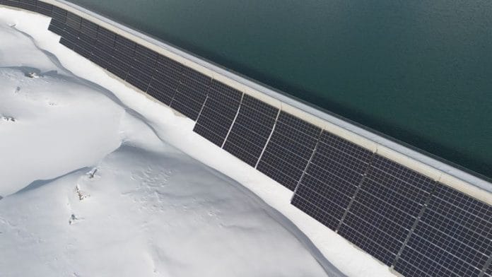 The Lake Muttsee dam, in the central Swiss canton of Glarus, is over 2,400 metres above sea level and surrounded by snow-capped peaks – something that the team behind the AlpinSolar project says is a key benefit.