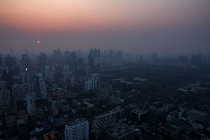 Air pollution is caused by a combination of crop-related burning, industrial pollution and heavy traffic, and a smoky haze covered the Bangkok’s skyline.