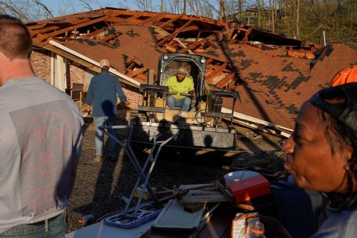 LITTLE ROCK, Arkansas (Reuters) – A violent storm packing high winds and heavy rains ripped through Southern and Midwestern sections of the United States as it headed east on Saturday, leaving at least 22 dead and scores injured, according to officials and media reports.
