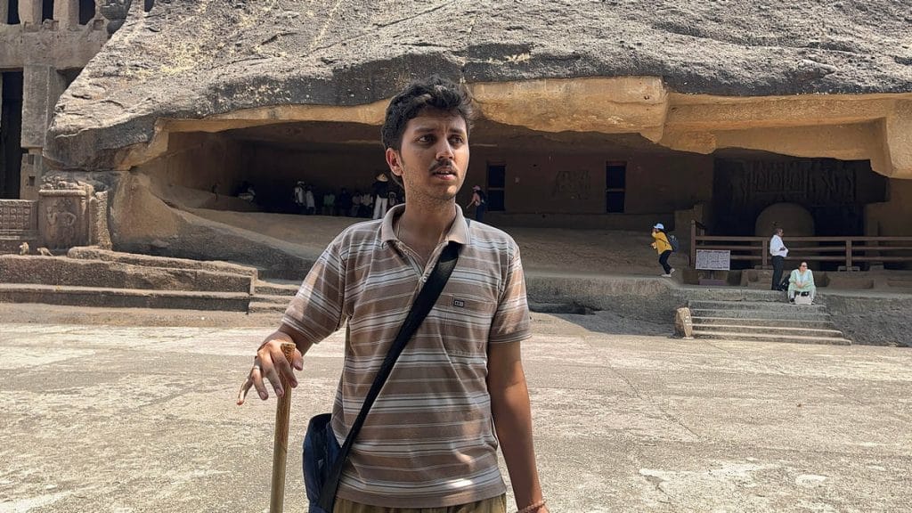 At Cave 3, one of the site’s most prominent chaitya halls, he pointed out how architecture structured social interaction.