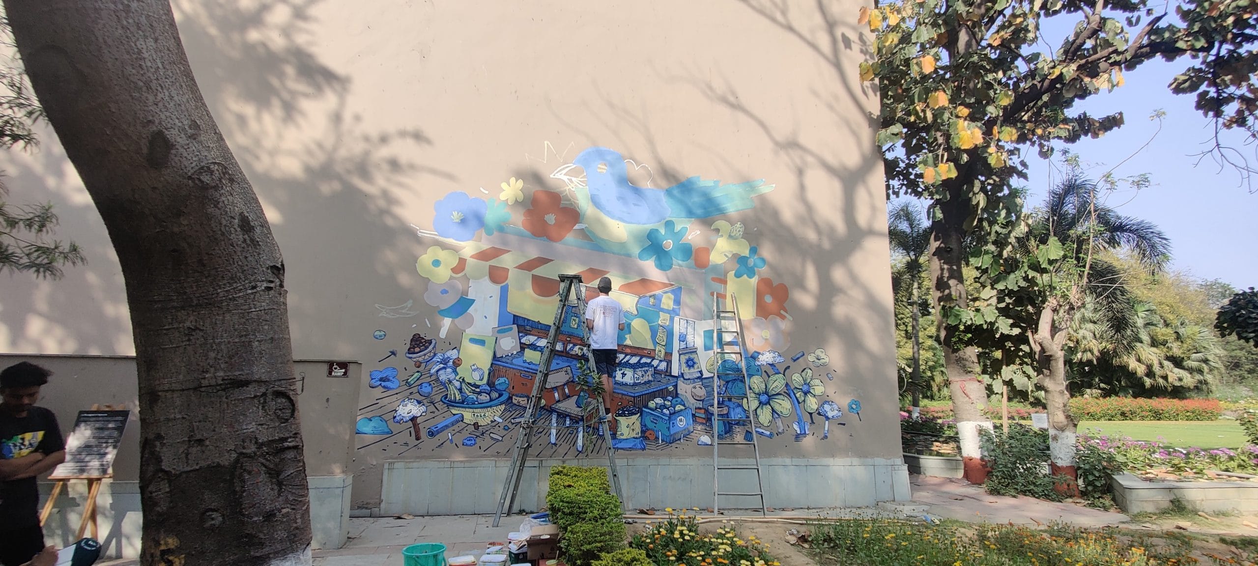 “I arrived during the right season to paint murals,” he told ThePrint. “The temperature doesn’t bother me much, I’m used to it. I actually prefer the heat to the cold. And here, painting in a (college) park, you really feel the pollution less.”