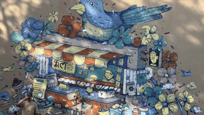 The mural, titled ‘The Nightingale and the Grocery Shop’, is part of Wall Art India, an urban art initiative led by the Alliance Française network in India in collaboration with the Embassy of France and the Institut Français. The fifth edition focuses on women’s voices and emerging urban artists with the theme, ‘Women, Horizons & New Voices in Urban Art’.