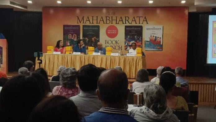 “For both the poet [Vyasa] and the painter, the Mahabharata is neither a nationalist chronicle of war that conflates heroic individualism with divinity nor a self-endorsing and self-approving Dharma book with a trivial moral tag about doing one’s duty dispassionately. Nor [is it] a philosopher’s conundrum that fails to resolve moral ambiguities,” said Bhalla at the launch of the volumes at Delhi’s India International Centre (IIC).