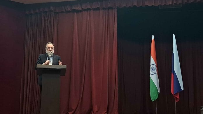 Dugin, nicknamed ‘Putin’s brain’, was delivering a talk on ‘Bharat as the State-Civilization: Geopolicy and Ideology’ at the Russian Centre of Science and Culture on 19 November. The event was attended by members of the Russian embassy, Jawaharlal Nehru University (JNU) students, and Dalbir Singh, national secretary of the All India Congress Committee.