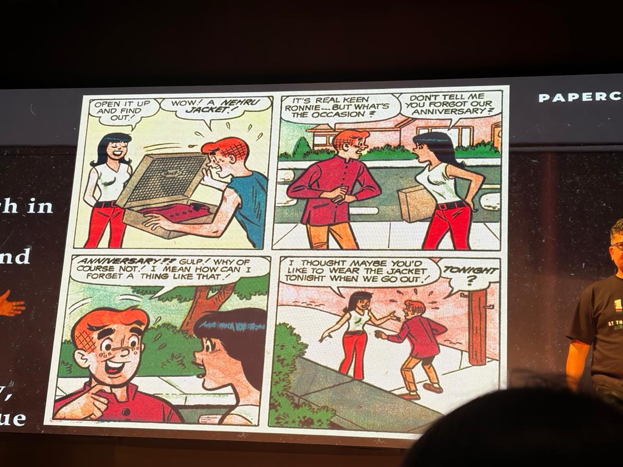 It links local and global histories to make a point — India’s internationalism isn’t a new phenomenon, it was always there, quietly making its way through schools in Hungary, Hollywood movies, Archie’s comic strip, influence on Colombian extremists with a Narcos reference, an Aurangzeb reference in the football club Arsenal’s logo, and vinyl records of a Spanish band named after the key architect of the Chipko movement. The power of India’s freedom struggle and the promise of the newly born nation captured the global imagination in the 50s and it remained in popular culture for decades. Though the word “Vishwaguru” was never uttered during the performance, it hovered conspicuously over the hall throughout the two hours.