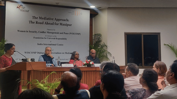 Women in Security, Conflict Management, and Peace (WISCOMP), a non-profit, non-sectarian organisation based in Delhi, hosted a dialogue Thursday as part of its WISCOMP Dialogues: Conversations on Mediation series. Those present included former Home Secretary G.K. Pillai, former ambassador Shyam Saran, and Sumona Dasgupta, senior research consultant at WISCOMP. The event with an audience counting over 50 people also saw attendees from both the Kuki and Meitei communities.