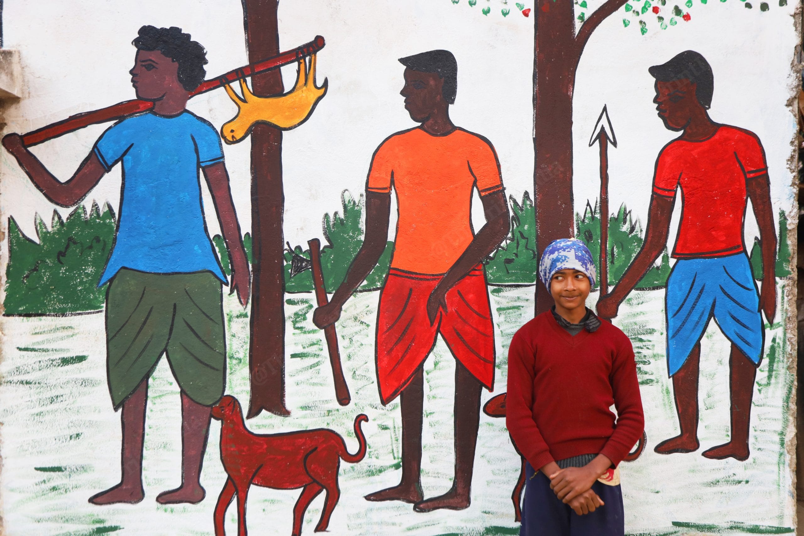 Children observe elements in their natural surroundings, their lifestyle and draw them on the walls. Class 8 student Deep Mallik once saw villagers going on a hunt. He drew that on the wall of one of the houses. Mrinal Mandal said that the artists have taught the kids the study of nature and the kids replicate it on the walls.