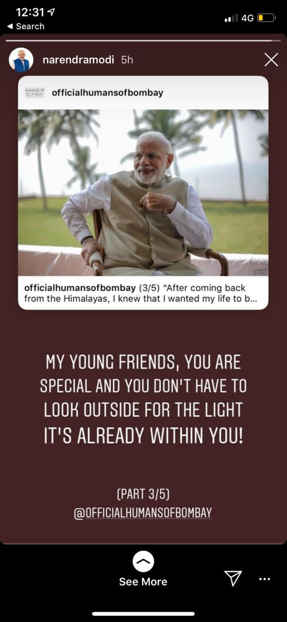 The evening before, his verified Instagram account, @narendramodi, shared his interview with Humans of Bombay, a social media initiative inspired by a US-based campaign, Humans of New York, that celebrates the triumphs of common people.