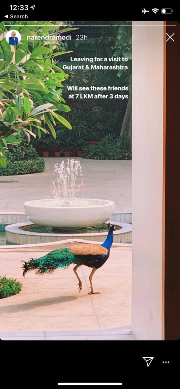 New Delhi: Before leaving for a visit to Gujarat and Maharashtra on 17 January, Prime Minister Narendra Modi put up an Instagram story of peacocks at his official residence, 7 Lok Kalyan Marg. “Will see these friends at 7 LKM (Lok Kalyan Marg) after three days”, he wrote in the accompanying message.