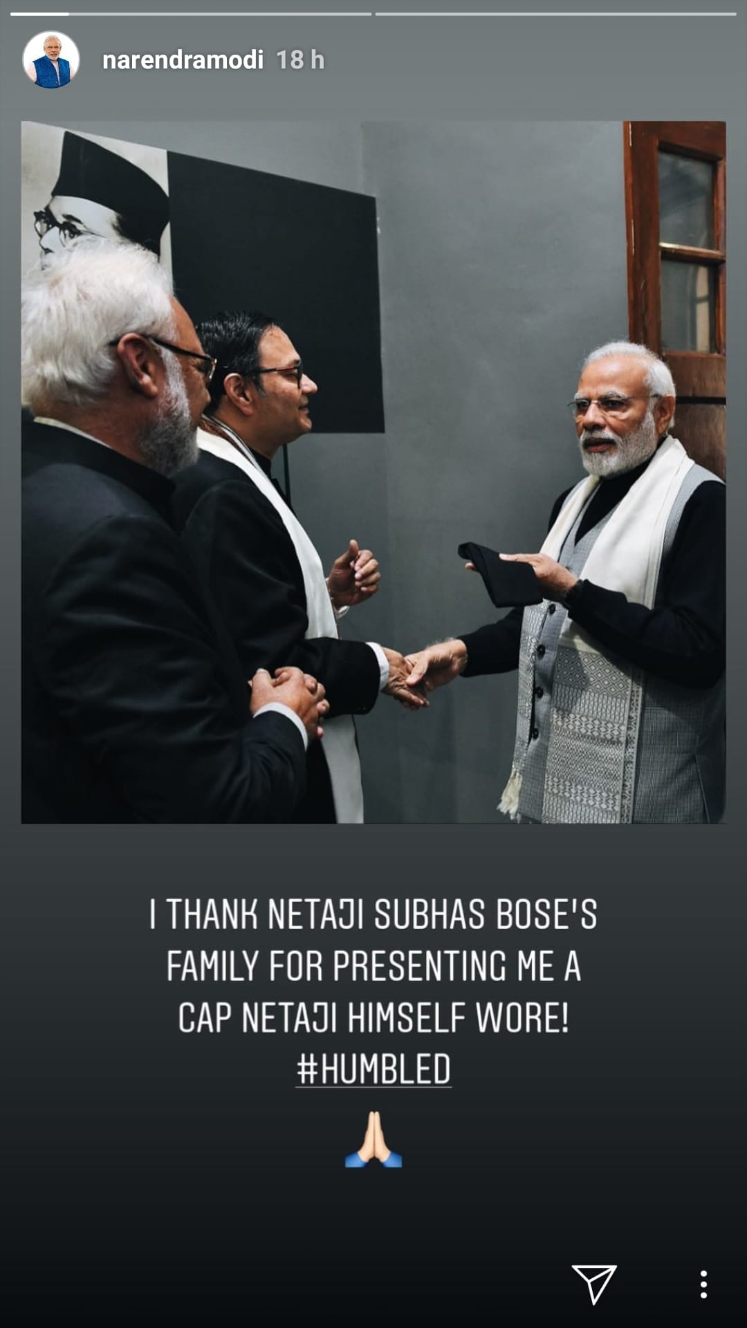 A week later, on 23 January, another Instagram story had the Prime Minister thanking freedom fighter Subhas Chandra Bose’s family for gifting him a cap “Netaji himself wore!” The PM was truly “#Humbled”.