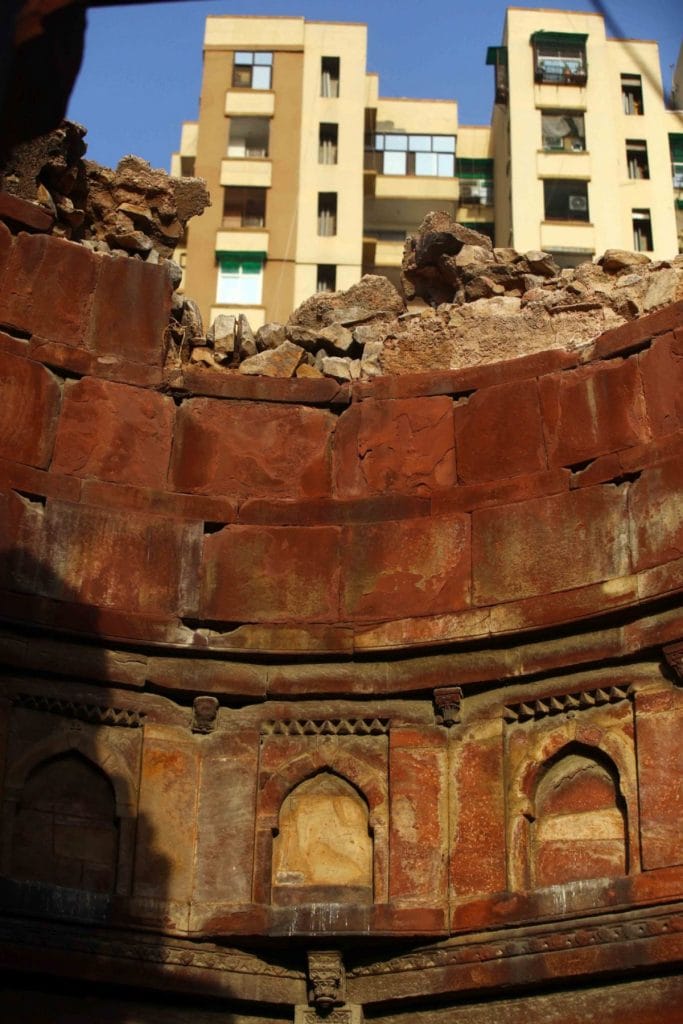 Squeezed between middle-class apartment buildings, the Teen Chhatris are today part of a kabristan, Ghaziabad’s burial ground managed by Mohammad Salmuddin’s family. The canopies are falling apart. Creepers are growing out of their pillars and domes. Blue tilework has mostly disappeared. A fallen dome lies under a heap of debris nearby. He wants them protected by the Archaeological Survey of India.