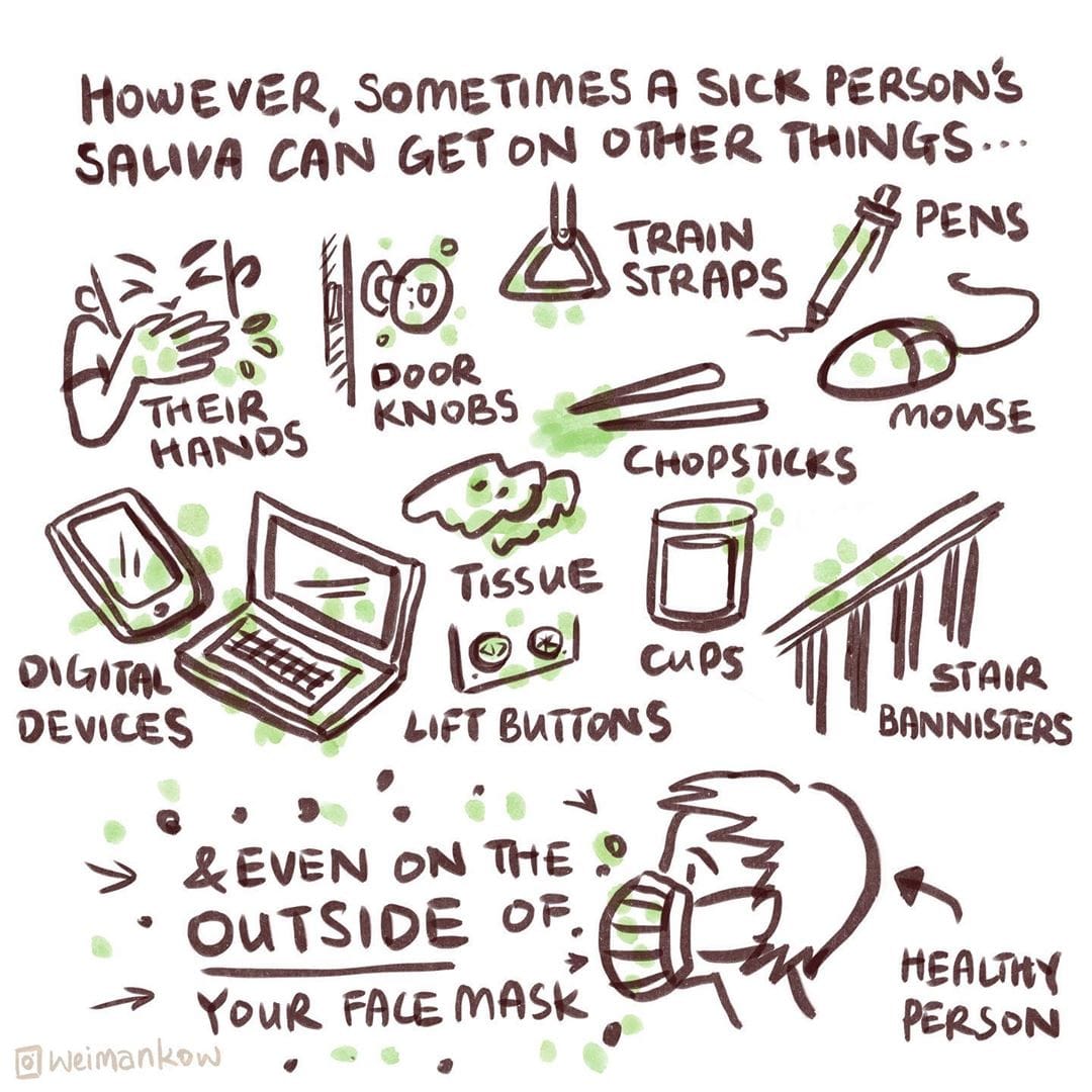 Singapore-based artist Wei Man Kow has encapsulated the advisories in two series of cartoons released on Instagram. Here, ThePrint republishes one of them, which seeks to explain exactly how coronavirus spreads (clue: tissue paper and masks are trustworthy allies in this fight).