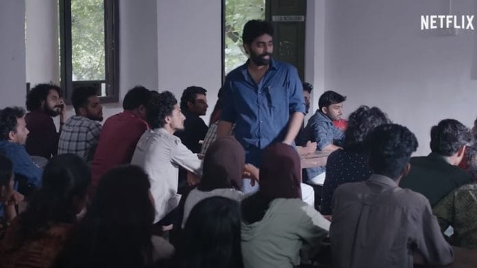 Not just this, there are over a dozen instances wherein the film imitates real-life occurrences. At one point, a senior college official says (looking at a picture of hijab-clad protesting students), “You can identify them from their clothes”. This happens after a Muslim professor is burnt and killed and the college tries to malign her character instead of offering solidarity.
