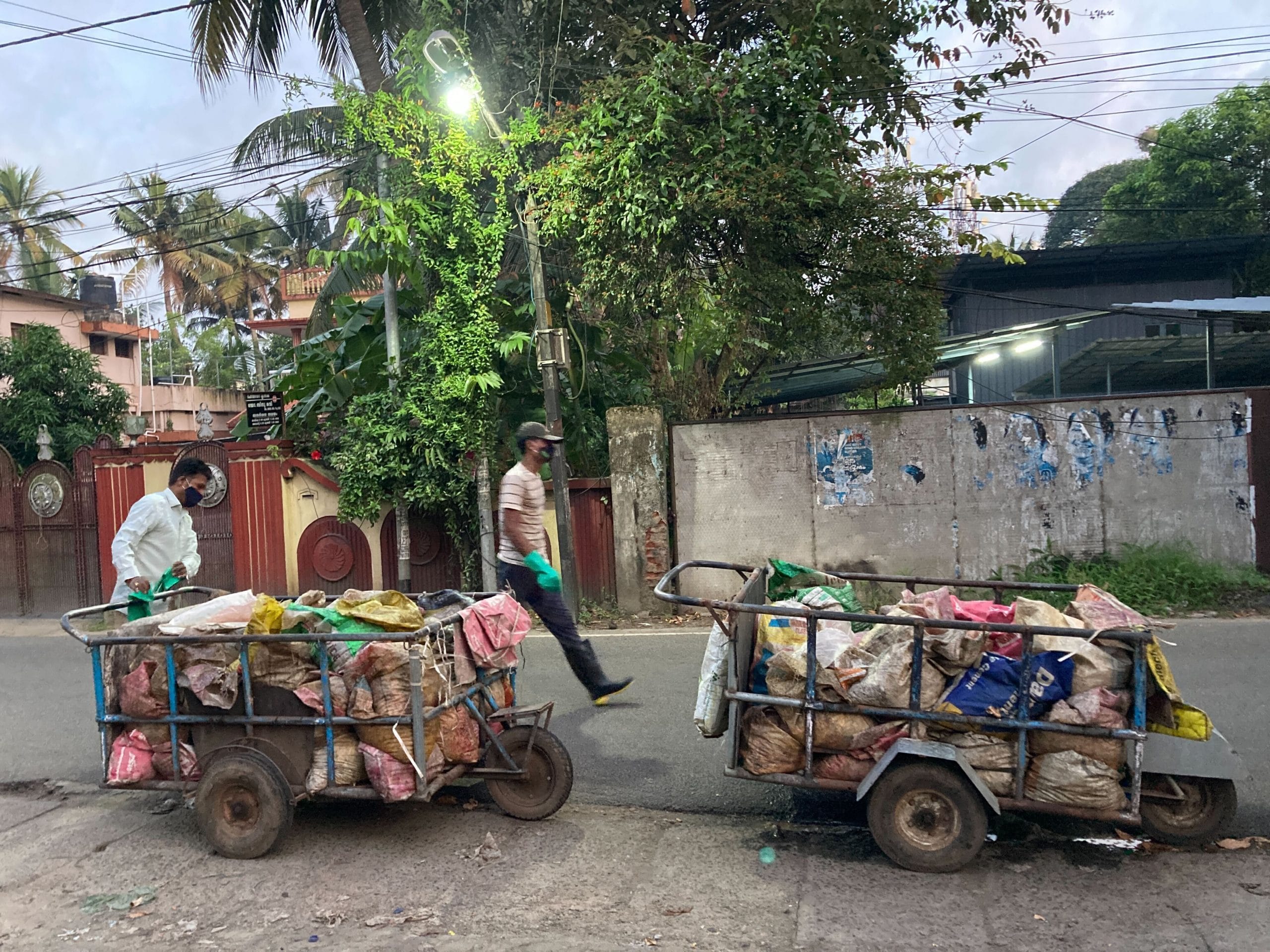 It’s 5:45am. Malayali residents are asleep. But the city’s trash is being collected by groups of Bengali men who descend on the neighborhoods.