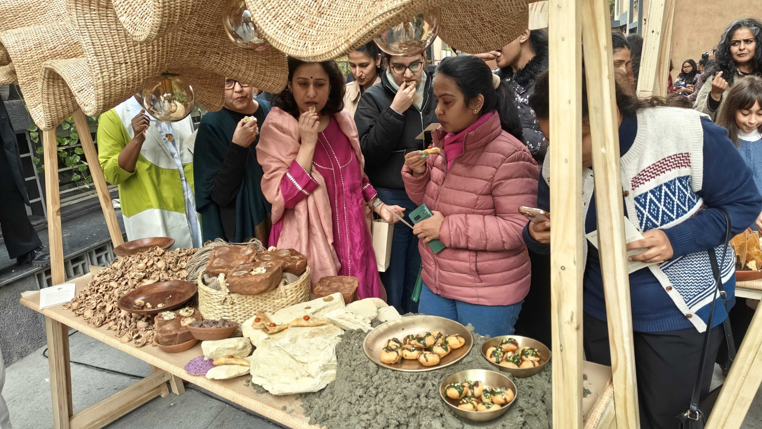 Following the talk, the food was served, and women dressed in the finest of Indian handlooms immediately placed themselves at the table, sampling the chef’s fare. The items vanished almost immediately, and servers started passing around trays of food, along with tea in kulhads (clay cups).