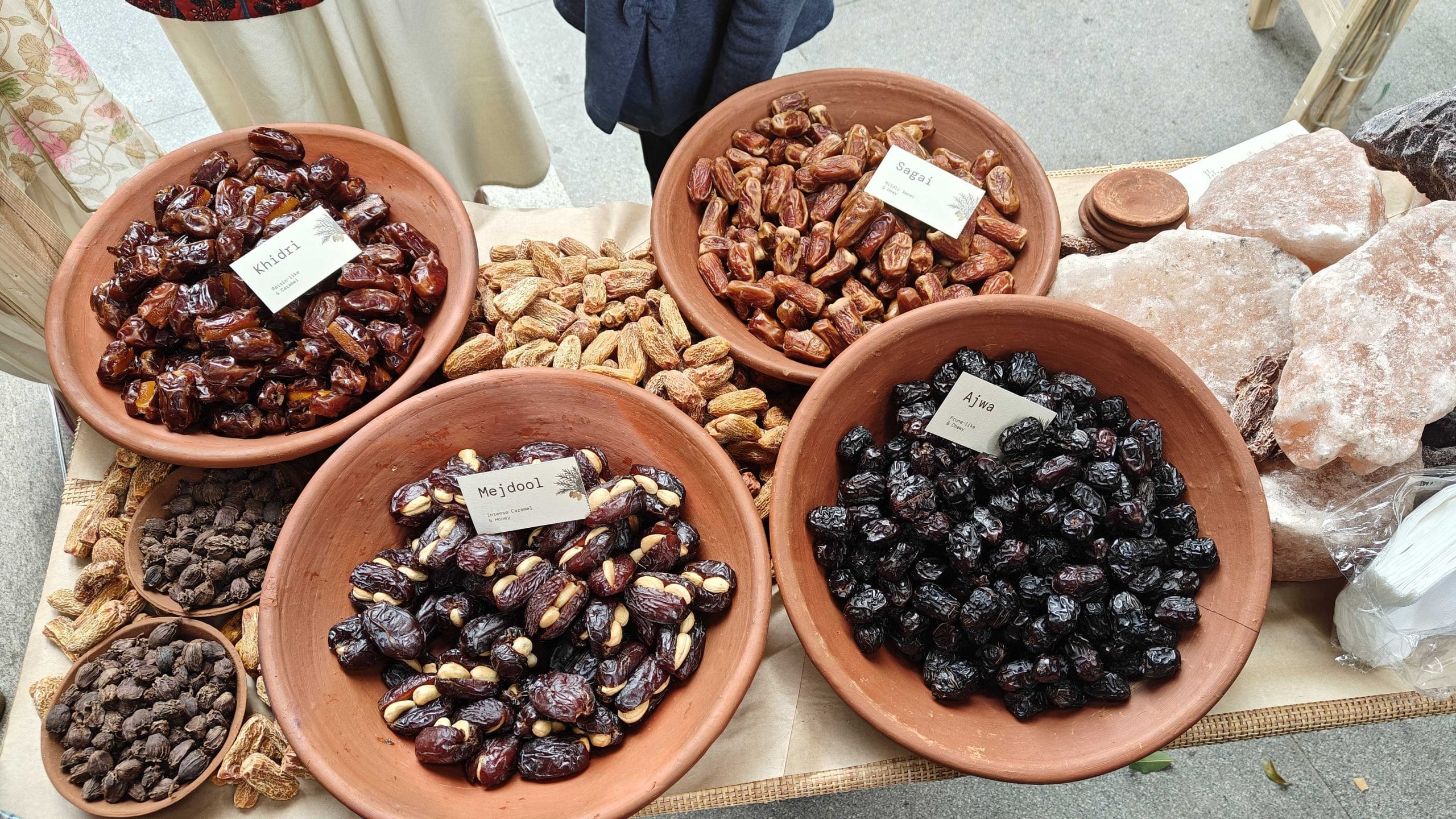 The food, too, creatively with shells of walnut and slabs of jaggery, to indicate items that were often exported or imported alongside dates or were by-products of the fruit. The jaggery turned out to be an object of curiosity for many, with one man in particular wondering if it was meant for eating or just decoration.