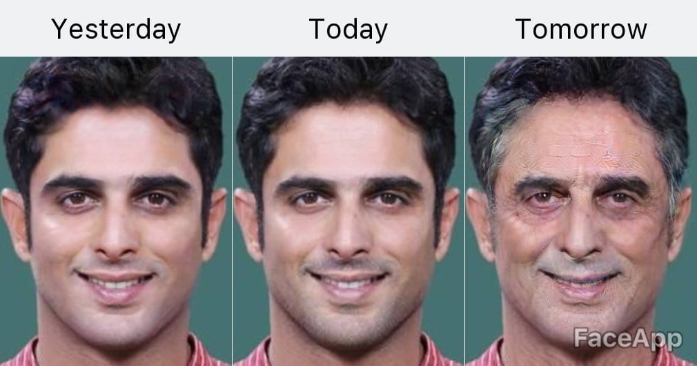FaceApp offers a more realistic transformation of the face through a photo collage of the person through three different ages.
