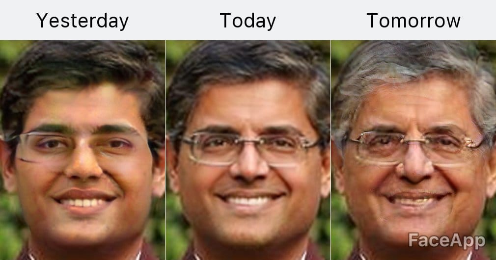 A Congress leader and once among the youngest MPs, Milind Murli Deora is given a fairly realistic future look in FaceApp.