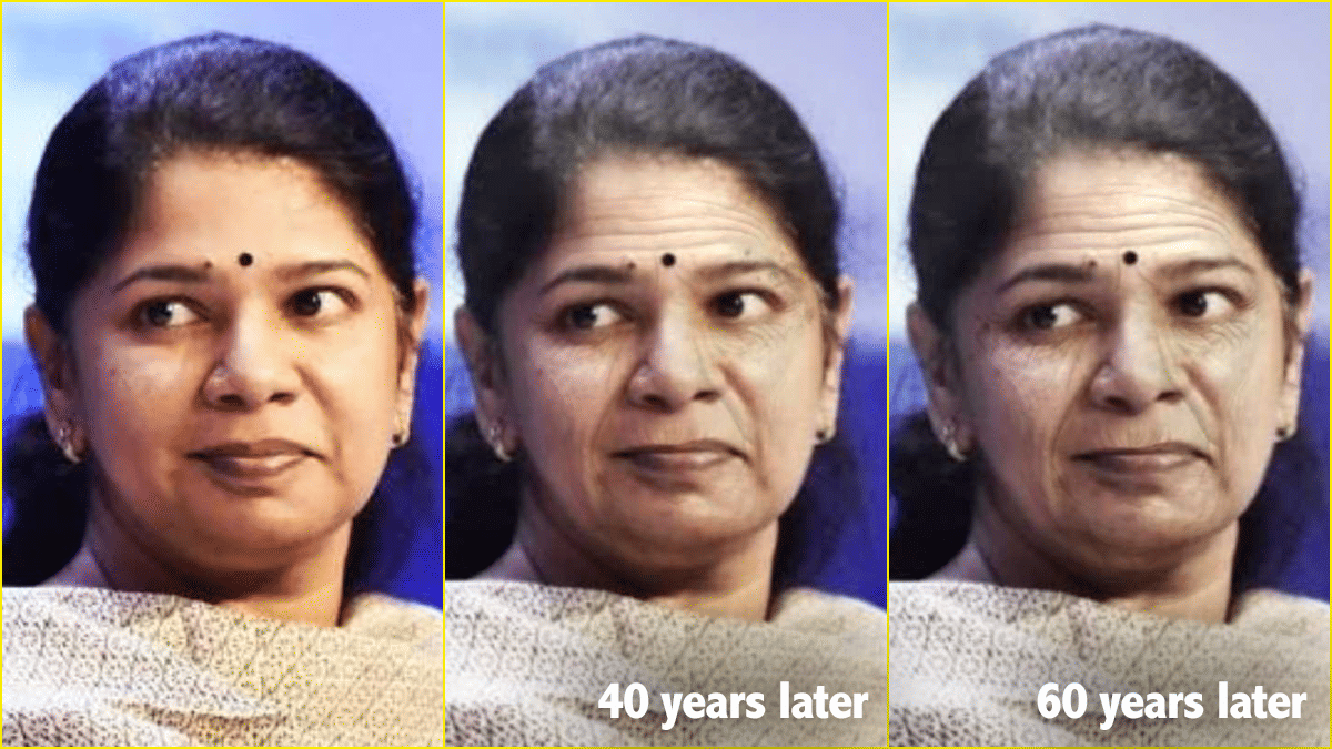 Kanimozhi is a member of the Dravida Munnetra Kazhagam and an MP. Oldify app gives her two future looks.