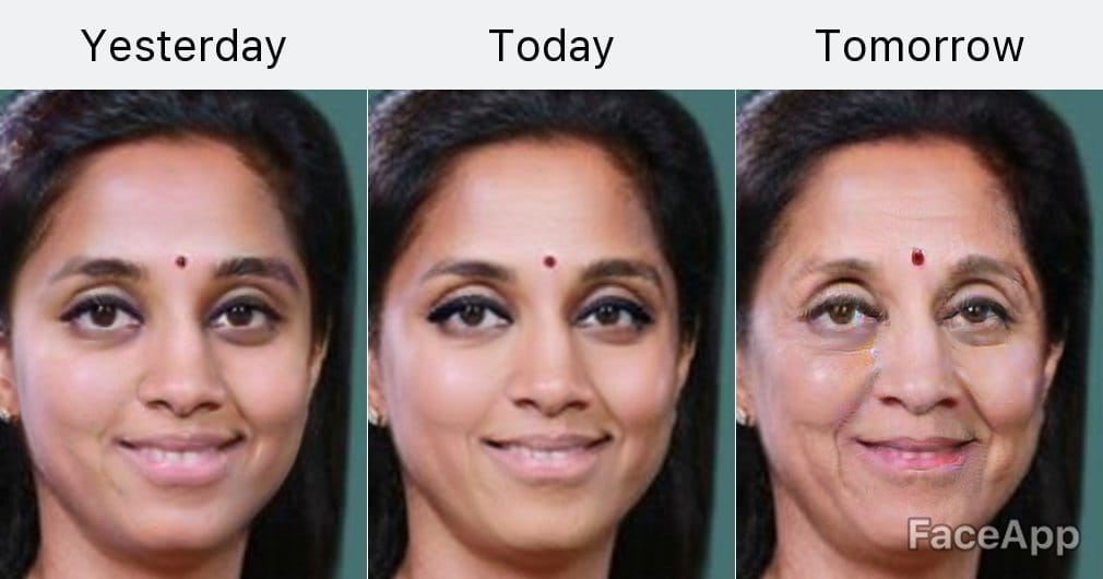 FaceApp offers a more realistic transformation of the face through a photo collage of the person through three different ages.