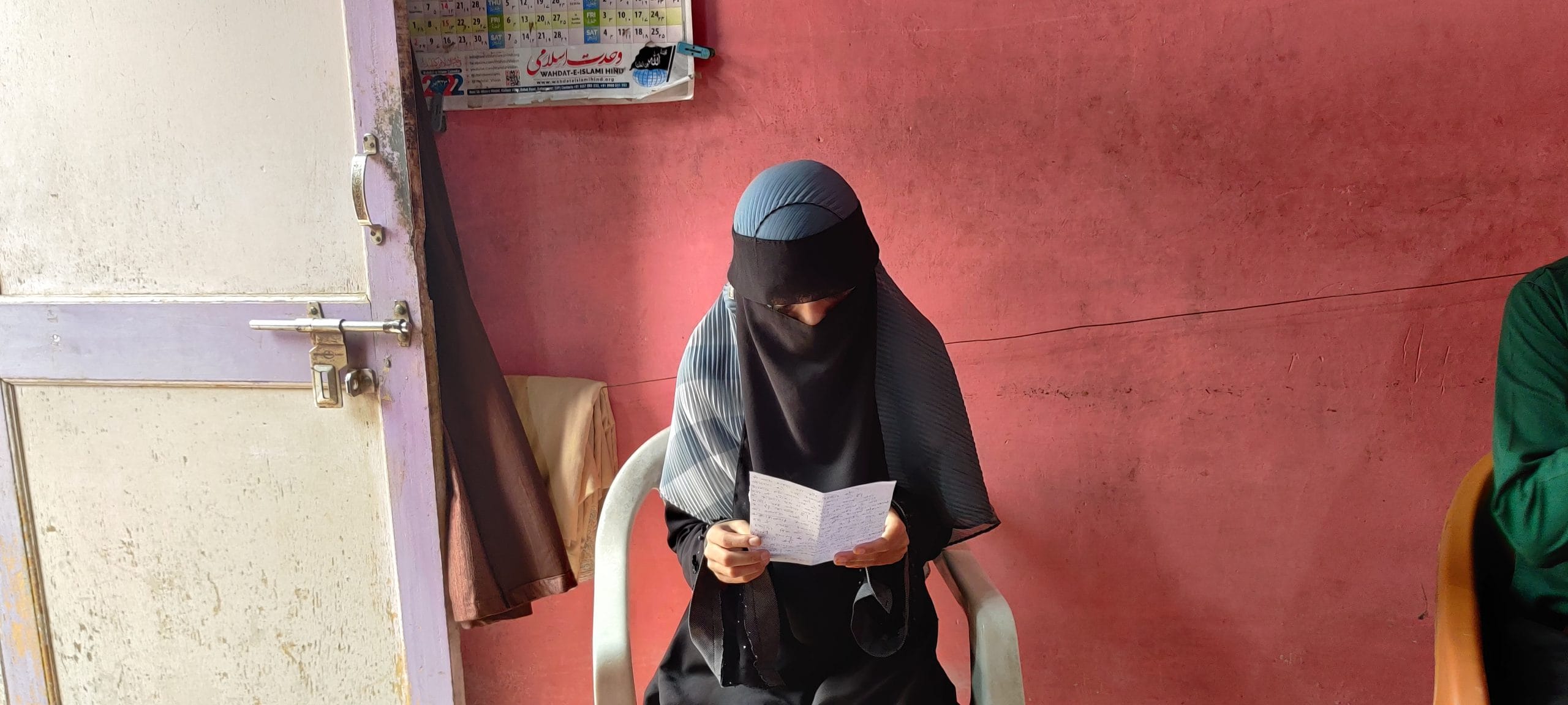 Asif Khan’s daughter Nusaiba reading one of his letters to her | Photo: Apoorva Mandhani | ThePrint