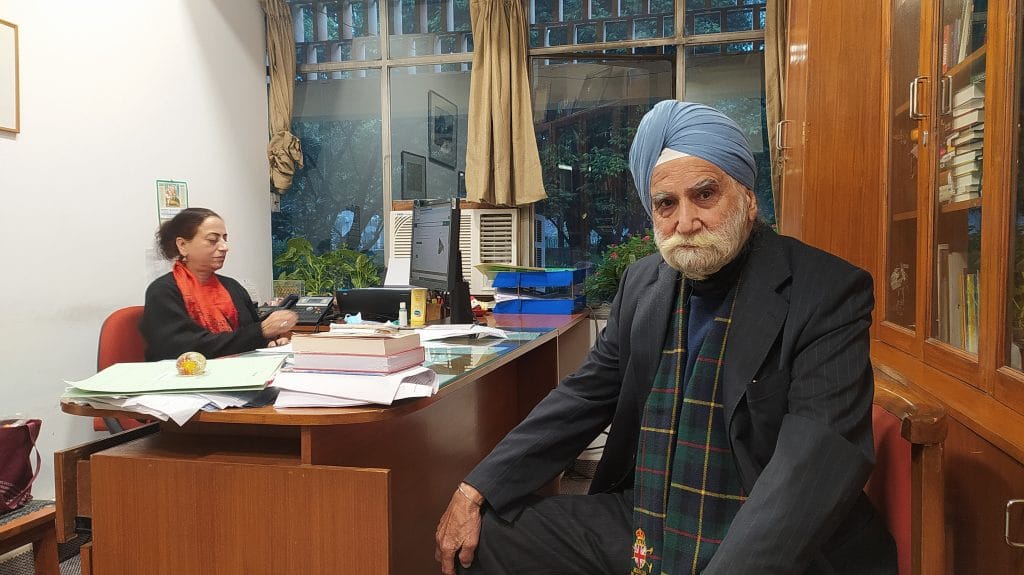 Writer and historian AS Bhasin (right) at IIC library, with chief librarian Usha Munshi (left) on 28 December 2021 in New Delhi | Pia Krishnankutty | ThePrint