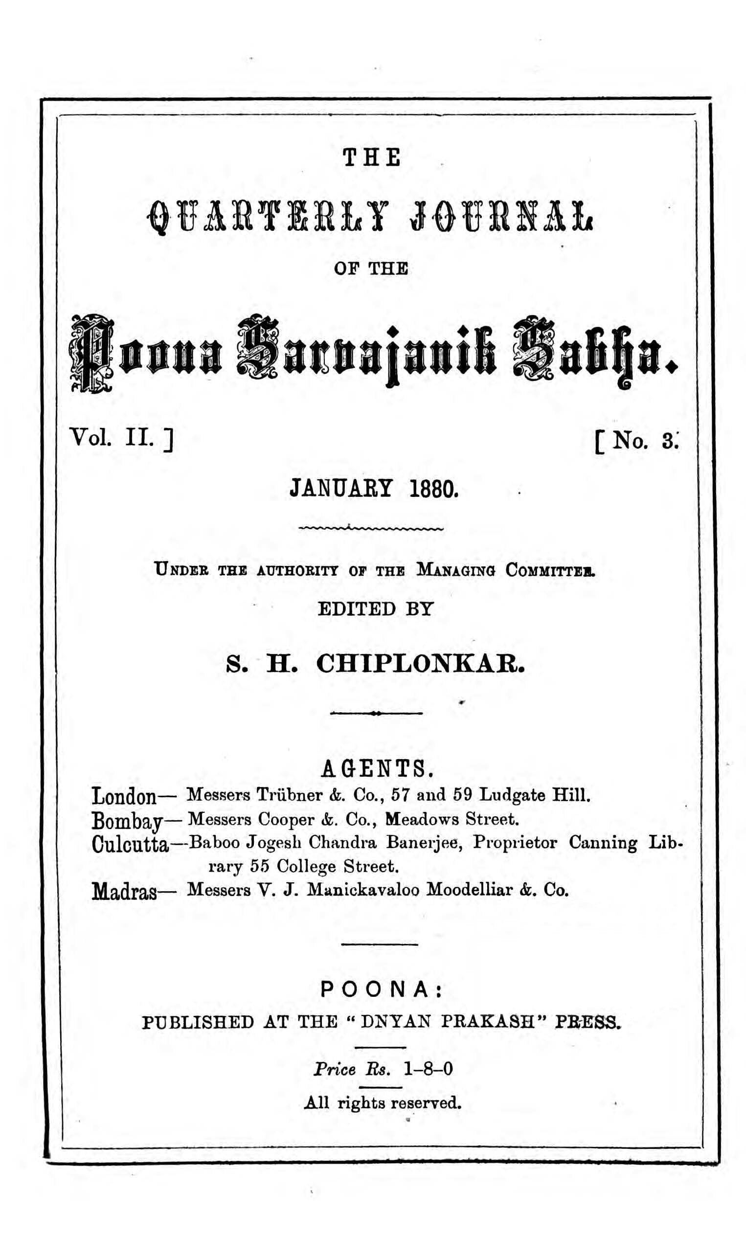 Quarterly Journal of the Poona Sarvajanik Sabha, Vol 2, 1879-1880 | Photo: ideasofindia.org.