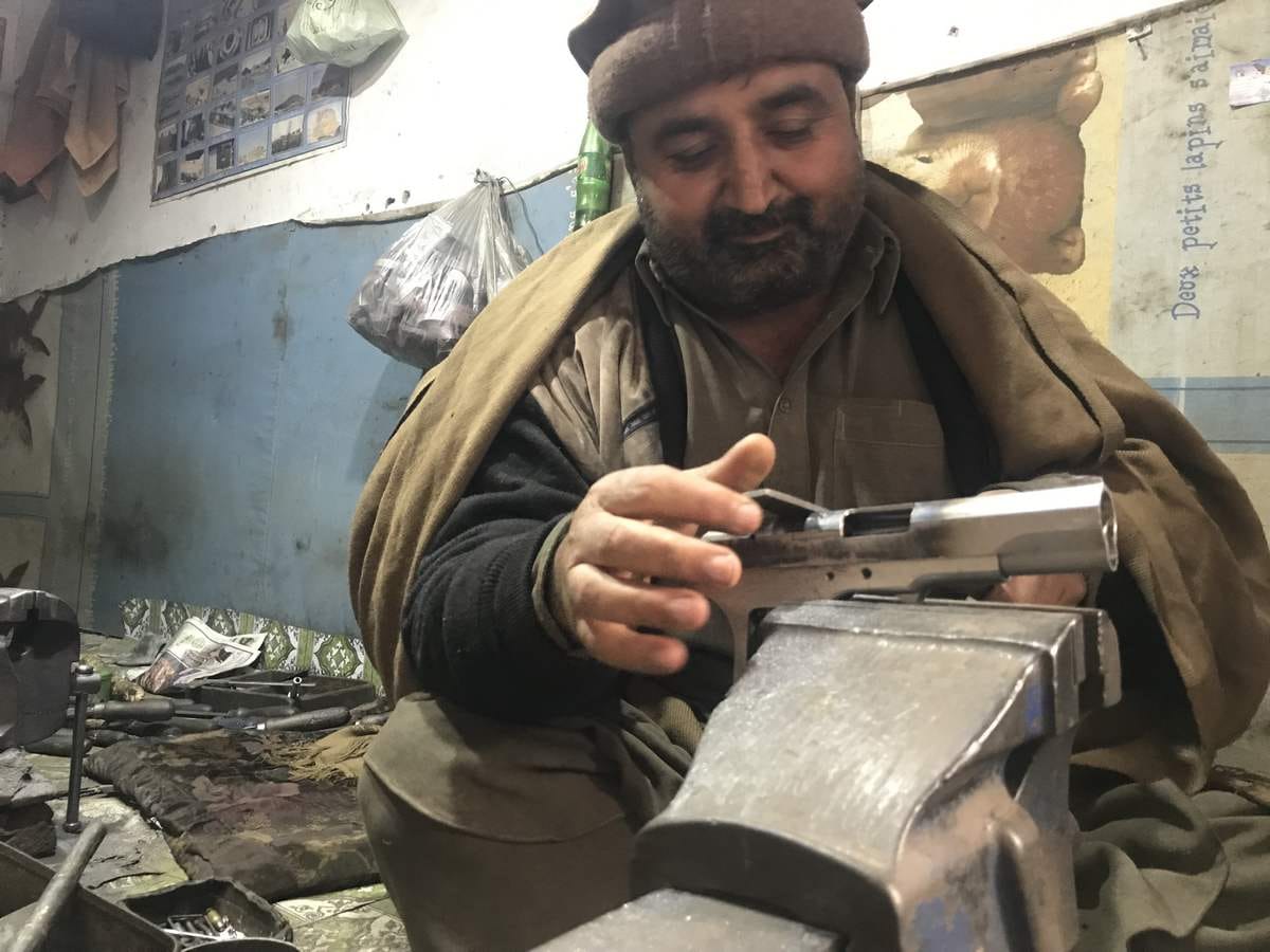 “The industry has collapsed,” says Gul Zameen Afridi, a 40-year-old who deals in 12-bore shotguns. “Earlier, people would come from all over the world to buy weapons. Now, we are only allowed to manufacture licenced weapons.”