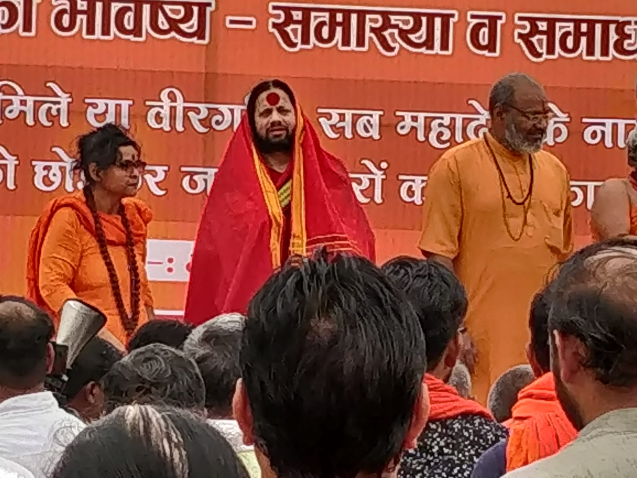“Aaj iss manch pe sirf dharam ki baat hogi (Today, on this stage, only religion will be spoken about),” announced the organiser and the emcee of the event, Ashok Pandey.