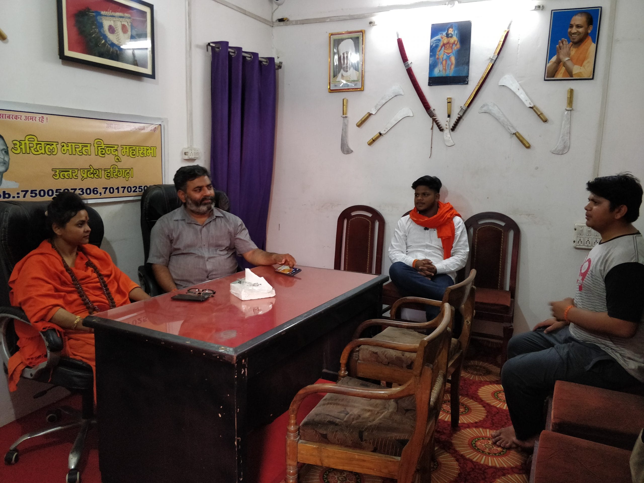 Daughter of Army Captain R.R. Azad, Pooja Pandey grew up in Uttar Pradesh. She studied in Saharanpur and Meerut, both in western UP and notorious for high crime rates and communal clashes. The family moved where Azad’s army postings, and later his job as a college principal, took them. Her innate fear of being attacked as a young girl took root there. “I used to walk around with an uncapped pen in my hand all the time,” she said, swirling on a big leather chair in her Hindu Mahasabha office in Aligarh.