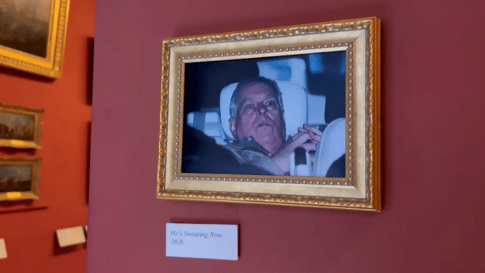 New Delhi: British political campaign group, Everyone Hates Elon, hung a picture of Andrew Mountbatten-Windsor’s arrest at the Louvre Museum in Paris following his arrest on suspicion of misconduct in public office. The picture was taken by Reuters photographer Phil Noble outside a police station in Norfolk after Thames Valley Police picked him up from his residence on the Sandringham Estate.