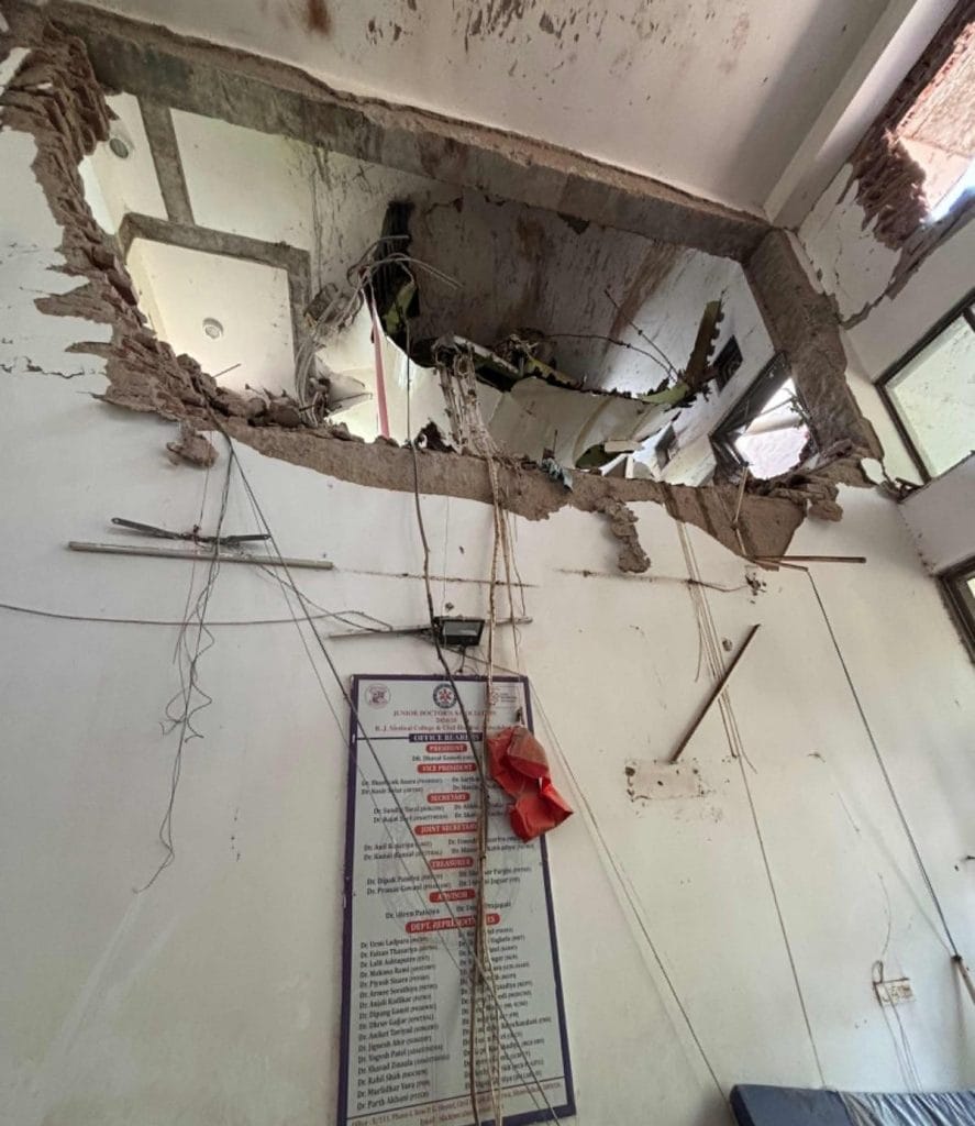 “There was a wall, and behind that, a lot of people were eating lunch. That collapsed. We rescued 10-12 people. Most of them were first- and second-year MBBS students. Four-five of them are in the ICU. Around 20 people have injuries such as fractures and scratches,” said Chavda, who is completing his internship after getting his MBBS degree this year.