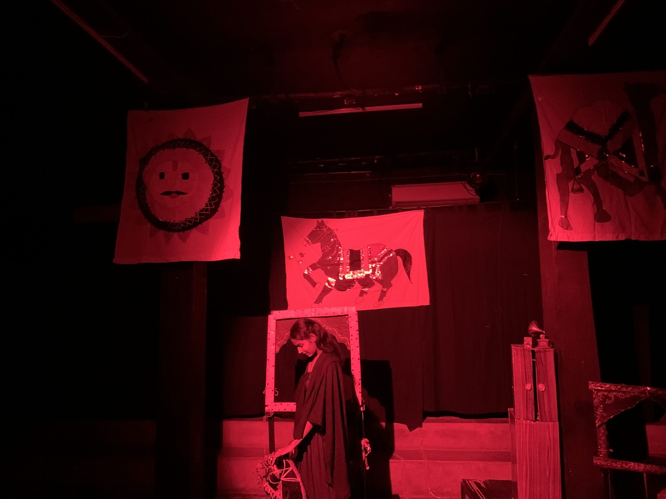 Hushed whispers and conspiracies about an alleged murder fill in Delhi’s Shadipur neighbourhood. A loudspeaker blares: “Hindus unite”. In another corner, residents gathered to watch a Spanish play in Hindi about a mourning mother and her five daughters called Kali Odhni. Two gunshots on stage stir up the crowd. The four daughters mourn and shriek in horror.