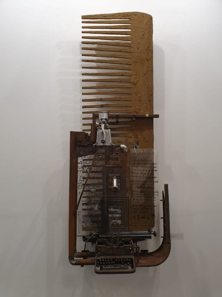Probir Gupta’s installation, A Poem of Instruments, displayed at the event held in January, was dedicated to the women of Shaheen Bagh. Consisting of a comb, microphone, typewriter and a mixer grinder, his piece was meant to reflect the history being created by the women of Shaheen Bagh.