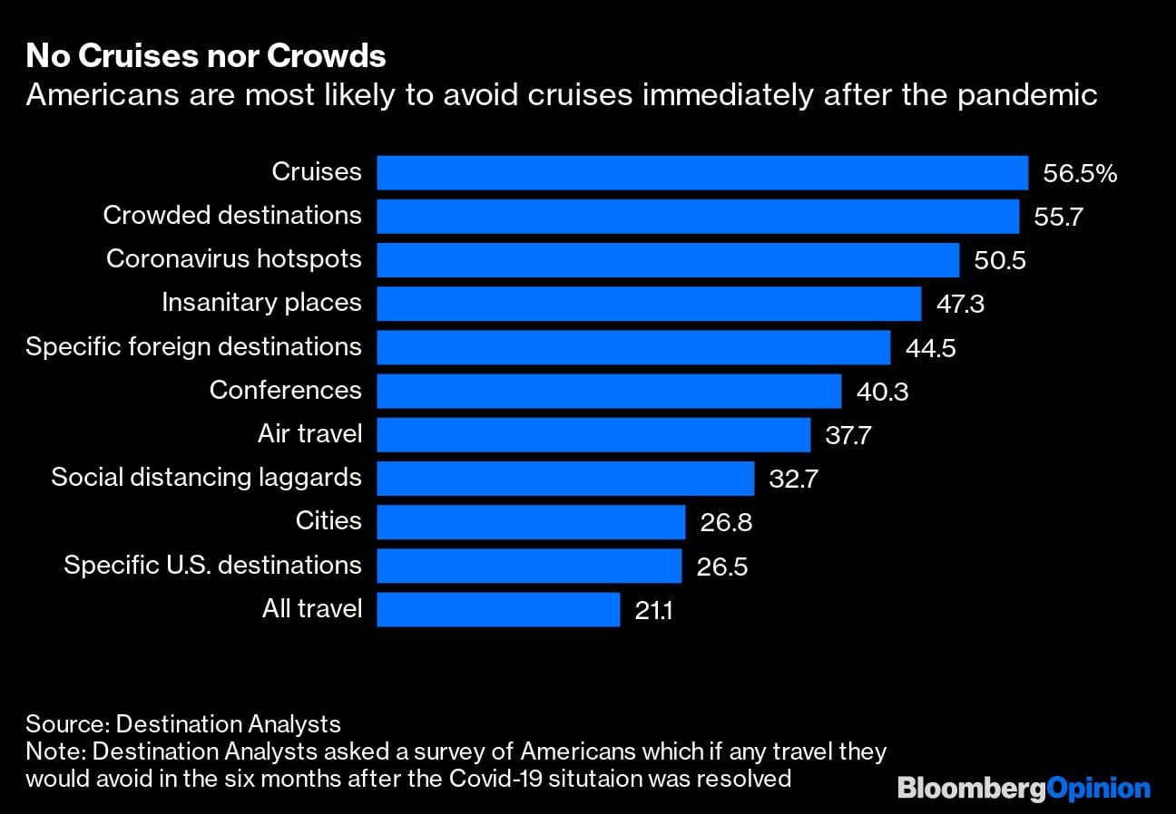 There are the optimists: Almost three-quarters of the people who were due to sail in May, but had their dream cruise canceled by British operator Saga Plc, chose to rebook at a later date. The pessimists: More than half of Americans surveyed by Destination Analysts agreed their next vacation would be a “staycation.” Those organized souls who planned their July Fourth escapes before Covid-19 was upon us are playing wait-and-see. French hotel giant Accor SA has seen less than 10% of reservations for July and August scrapped. But it’s still bracing for occupancy rates of 25-30%, as opposed to 75%, when travel begins again