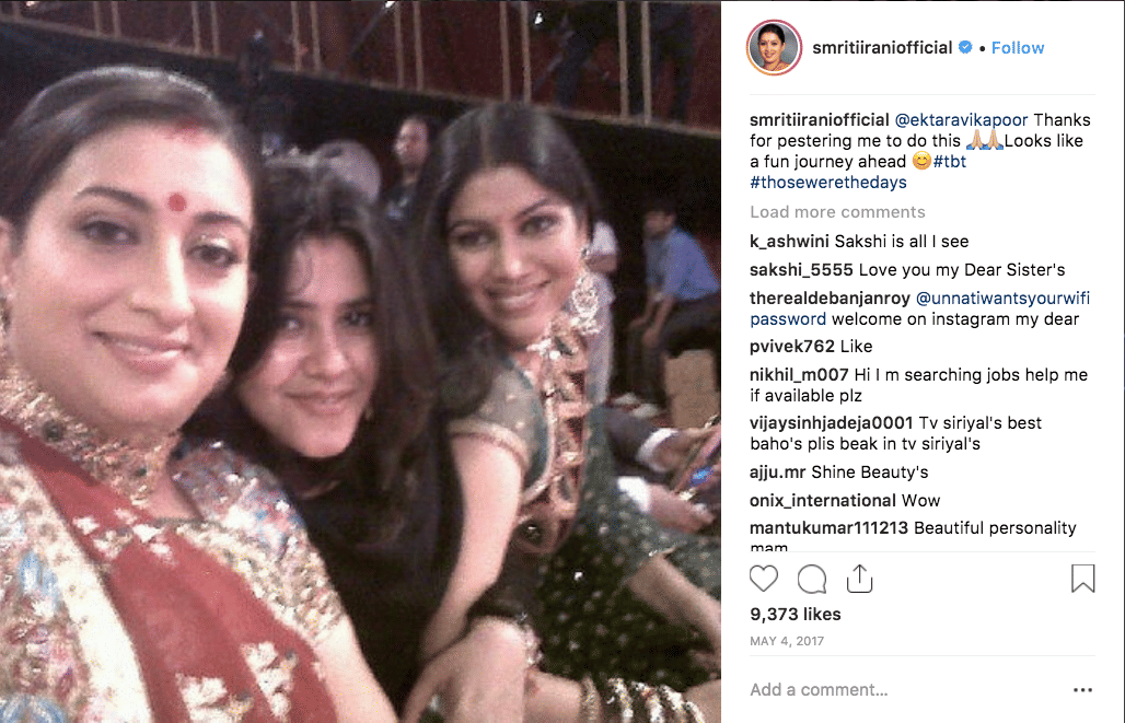 #Everydayoftheweek: It’s pretty easy to tell that Irani misses Kapoor and Tulsi, the two people who appear frequently in her #throwbackthursday (tbt) posts. Every day of Irani’s week is marked by a different mood — #Mondaymornings are for missing sleep, and #tuesdaymotivation is for life advice.