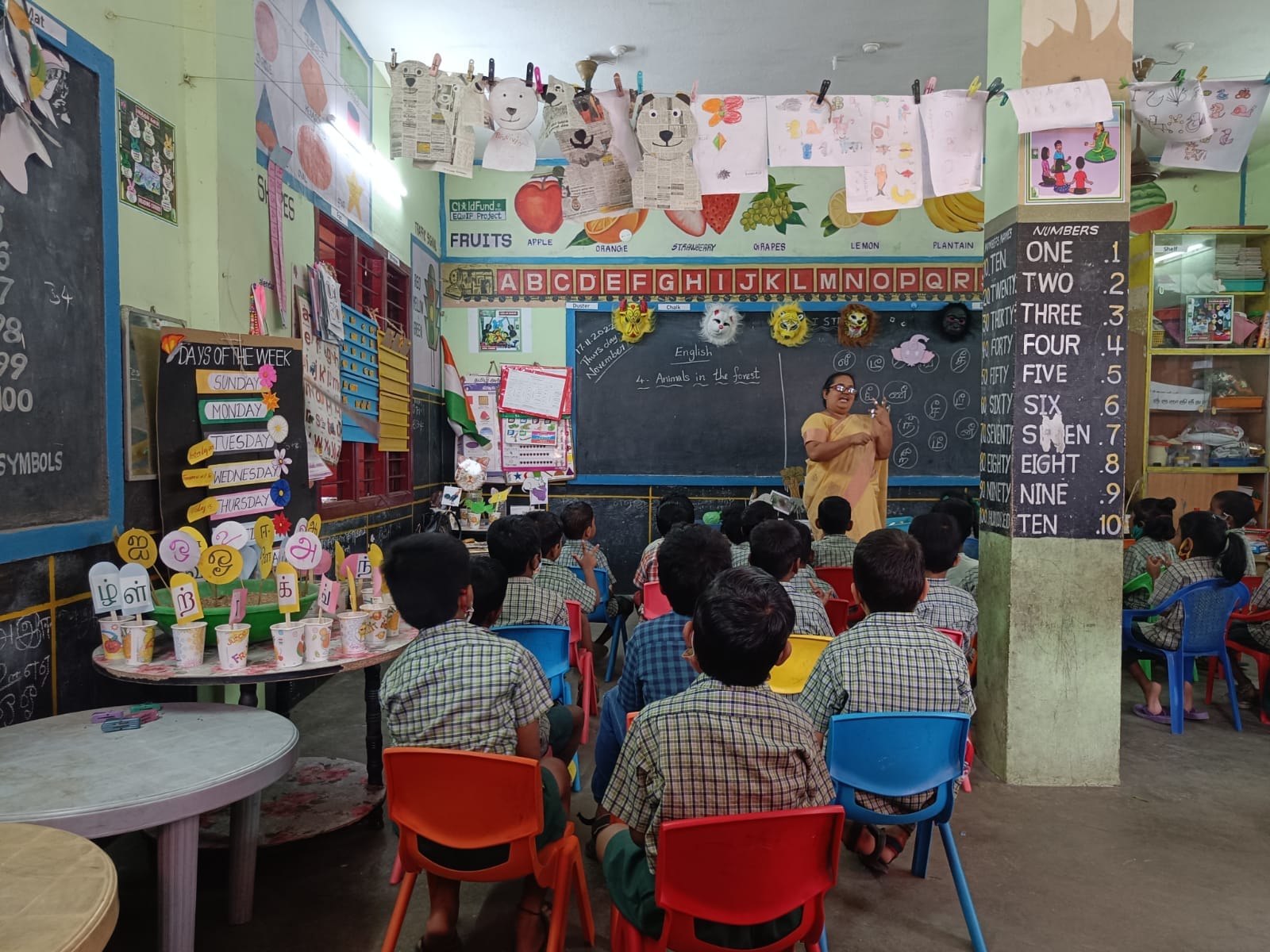 Mid-morning on Thursday, inside this first standard classroom at the Greater Chennai Primary School in Porur, M. Muthukamakshi, clad in a pale yellow saree, is teaching the children ‘CVC words’ – Consonants, Vowels, Consonants.