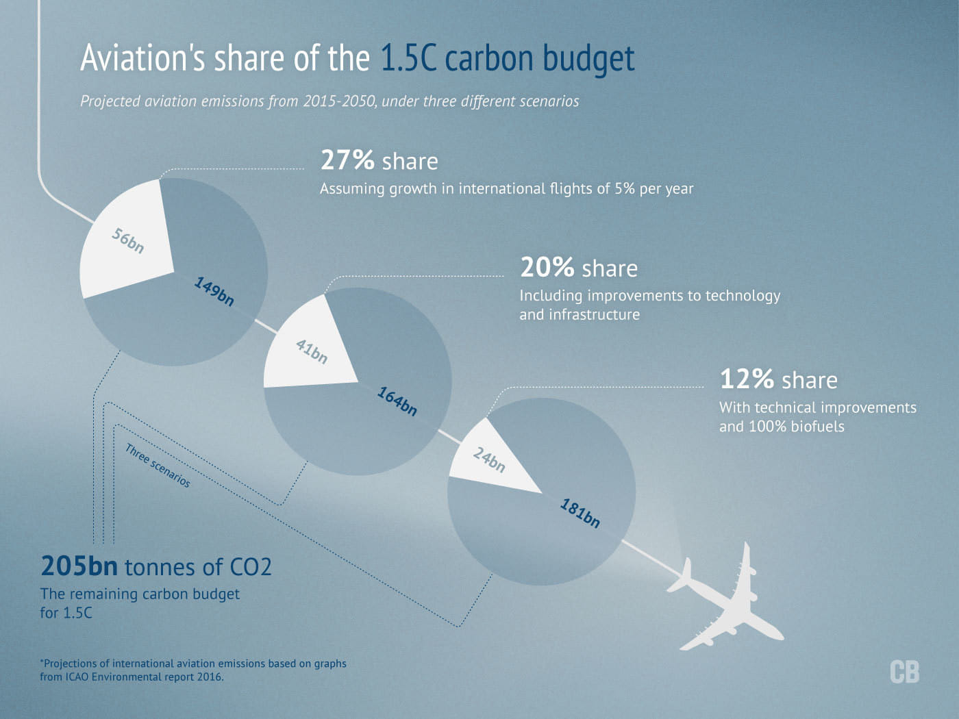 But the airline industry is fighting back with a promise that a new generation of planes will halve emissions by 2050. It says the annual 860 million tonnes of CO2 the industry currently generates is only 2% of world emissions.