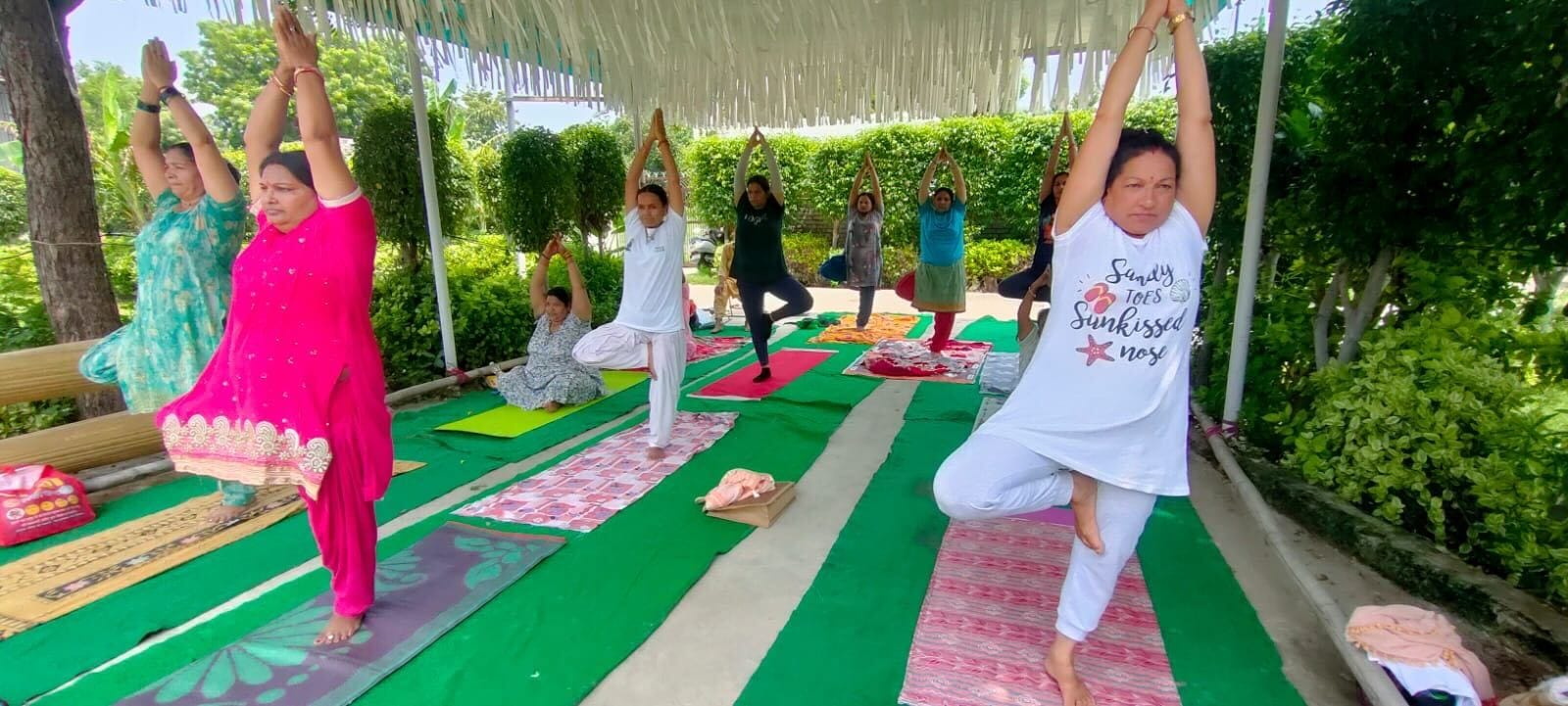 By late morning after several attempts, Premlata and a few others managed to open the wedding garden and spread out the mats for a delayed yoga session, this time without a trainer.