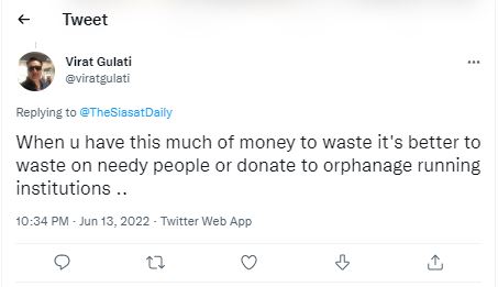 ‘When u have this much money to waste it’s better to waste on needy people or donate to orphanage running institutions,” wrote another.
