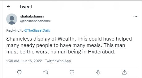 “Shameless display of Wealth. This could have helped many needy people to have many meals,” commented a third Twiteratti.