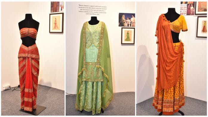 “Costumes, before Bhanu, had nothing to do with either the sets or the characters. They were just kind of passed on to people. Then here comes Bhanu, and we start getting something which is sensitive, which is researched,” said fashion designer and textile historian Ritu Kumar in a panel discussion at the inauguration of the event. The panel also included exhibition curator Brijeshwari Kumari Gohil; Kiran Nadar, founder and chairperson of Kiran Nadar Museum of art; Radhika Gupta, daughter of Bhanu Athaiya; and Radhikaraje Gaekwad, the Maharani of Baroda.