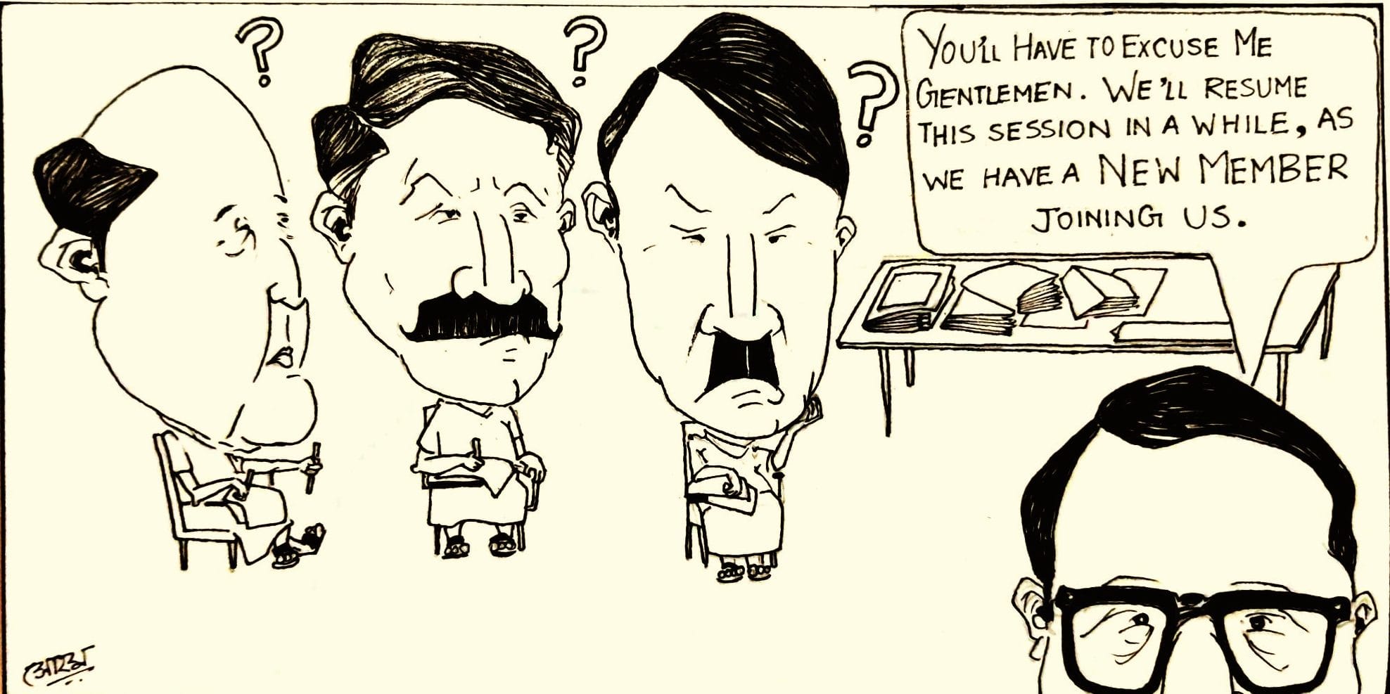 Hitler finds a seat with Stalin and Mao for the day’s group therapy session. This is where dictators on the mend are usually encouraged to share their feelings.