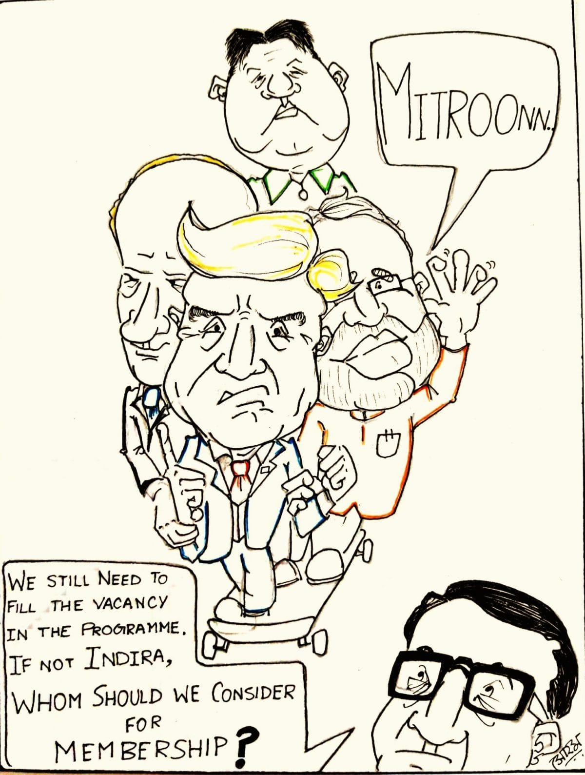 Please welcome, Mrs Indira Gandhi, the former Prime Minister of India, who somehow managed to get re-elected to power fairly after imposing draconian laws through a 21-month-long politically motivated Emergency in her country. She has been nominated for membership by union minister Arun Jaitley.